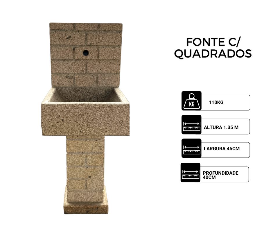 Produzida em granito maciço, é extremamente durável e resistente às intempéries, mantendo a sua aparência ao longo dos anos. O suave correr da água cria uma atmosfera de tranquilidade e bem-estar, ideal para momentos de descanso e contemplação.